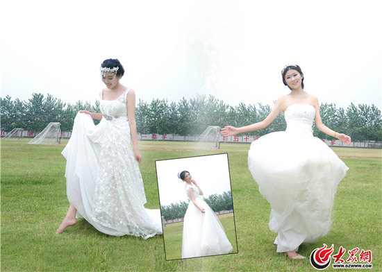 创意婚纱照中留下了六个姑娘在校园里最后时光的身影,她们表示想用这种方式纪念青春与大学时光。(记者 满德利)