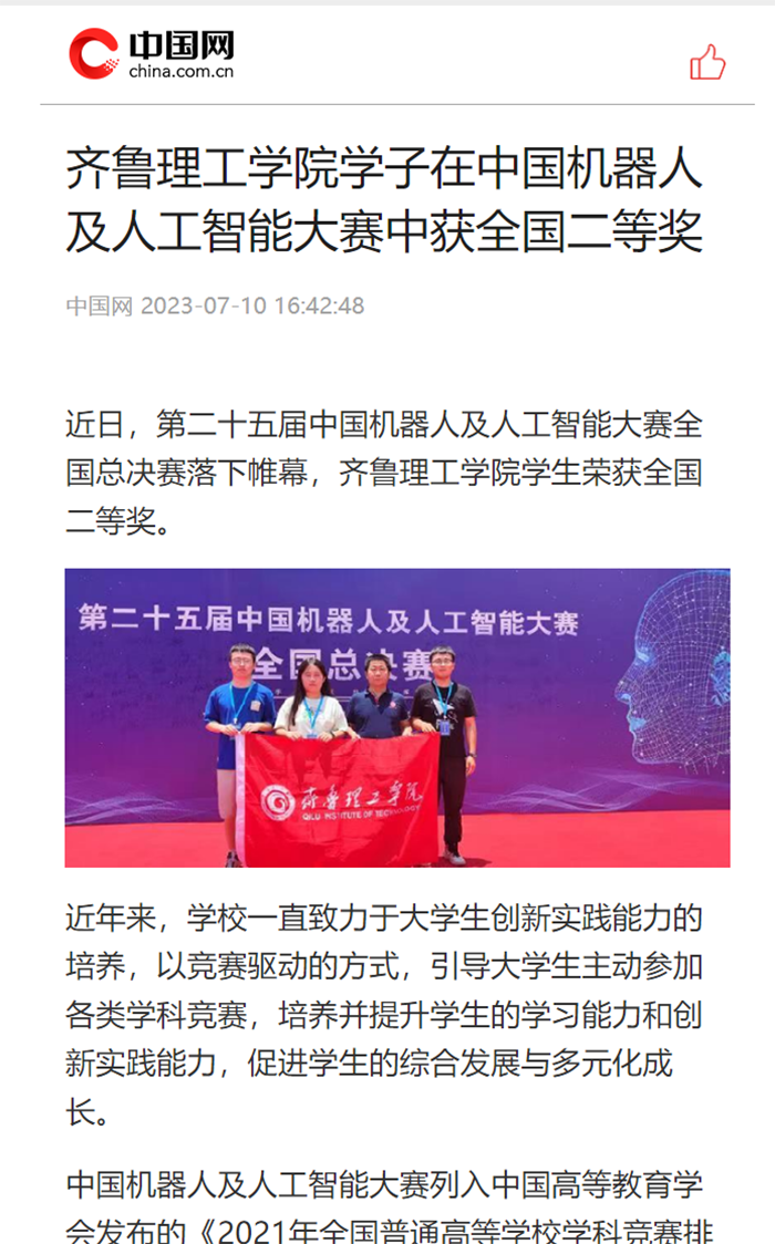 中国网:mk足球学子在中国机器人及人工智能大赛中获全国二等奖